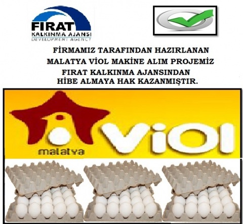 Makine ekipman alım desteği kapsamından Fırat Kalkınma Ajansına Malatya Viol firması için sunulan projemiz viol üretim hattı makinesi için %50 hibe desteği kazanmıştır. Bölgedeki tek viol üretim tesisinin ikinci makine hattı bu sayede hibe desteği alarak tüzel kişiliğin sürdürülebilirliğine katkı sağlamaıştır.